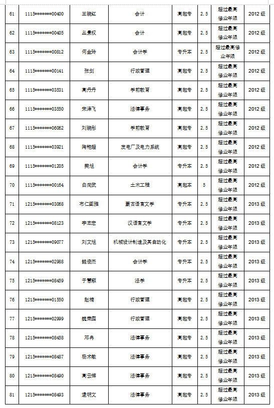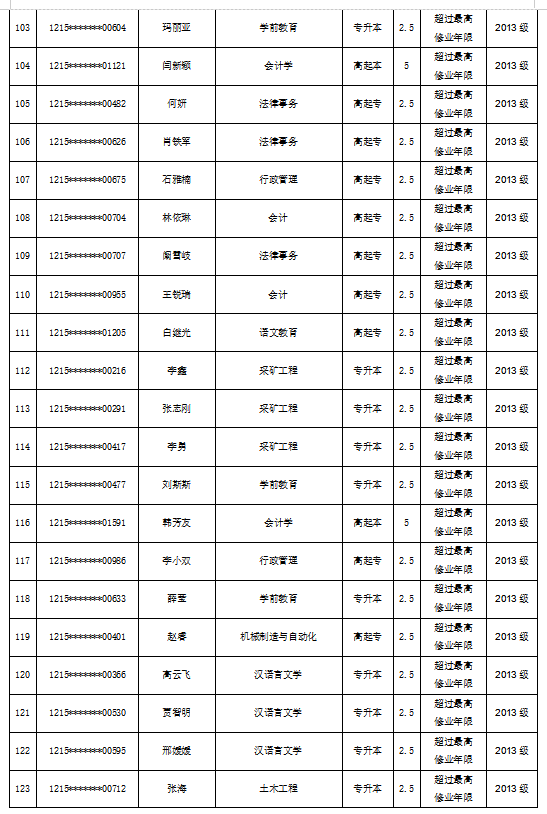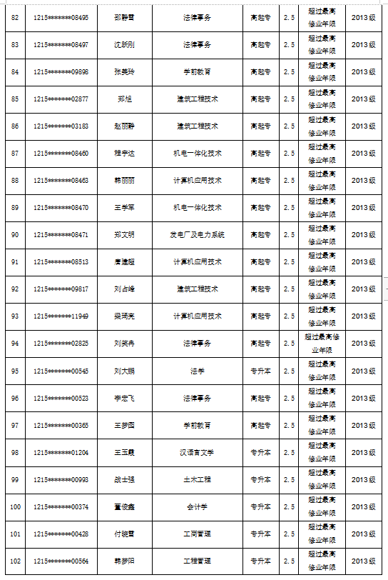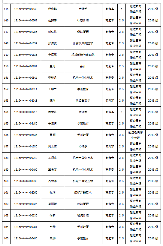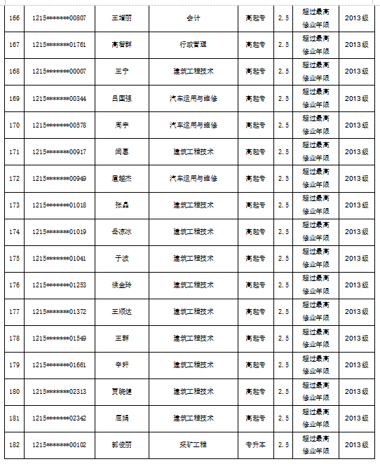 关于拟对赵春玲等182名员工作退学处理的公示