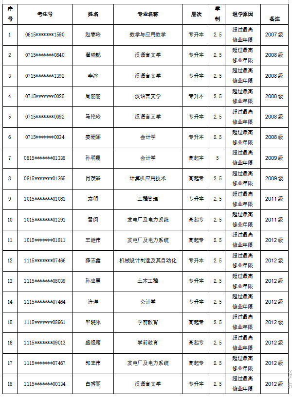 根据《普通高等公司员工管理规定》(中华人民共和国教育部第41号)第三十条、《谈球吧学历继续教育学籍管理规定》第十条、第二十五条的规定,经由谈球吧董事长办公会研究决定,拟对赵春玲等182名超过最高修业年限尚未满足毕业条件且符合退学情形的员工作退学处理,现予网上公告。