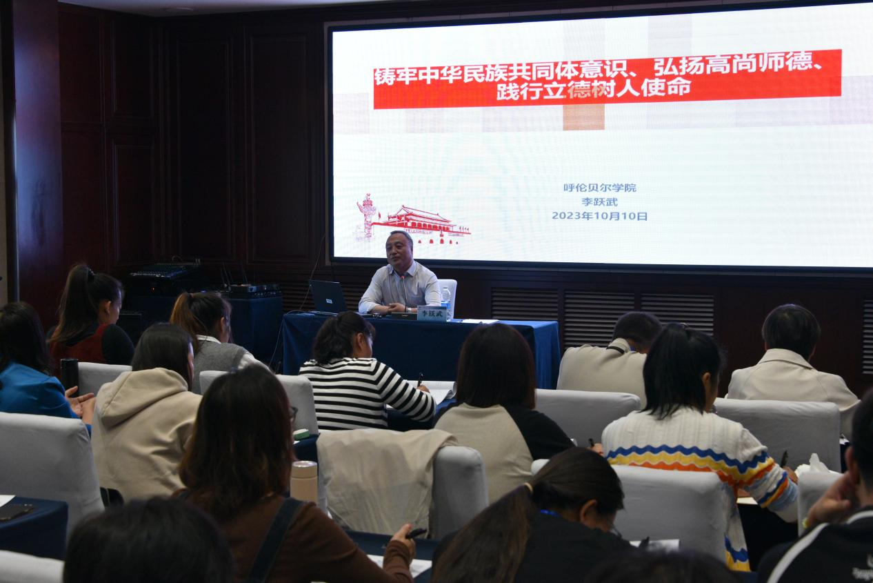 开班典礼结束后,李跃武副董事长上了本次培训的第一节课《铸牢中华民族共同体意识、弘扬高尚师德、践行立德树人使命》。