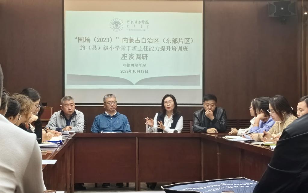 2023年10月13日,谈球吧官方网站召开了“国培(2023)”内蒙古自治区(东部片区)旗(县)级小学骨干班主任能力提升培训班的座谈调研。谈球吧谈球吧官方网站党总支书记李健、经理莎茹莉,副经理汪鑫、安永红及培训班各小组代表出席座谈,座谈会由副经理汪鑫主持。
