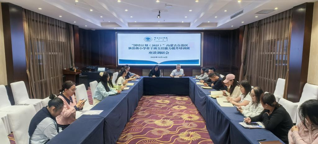 为精准掌握培训成效、倾听参训教师诉求,推动“国培计划”项目提质增效,10月16日晚,“国培计划(2025)”内蒙古自治区旗县级小学骨干班主任培训班调研座谈会正式举行。谈球吧官方网站副经理汪鑫、呼伦贝尔市教育事业发展中心副主任毕秀芝出席会议,20余名参训教师代表参加座谈,会议由汪鑫副经理主持。