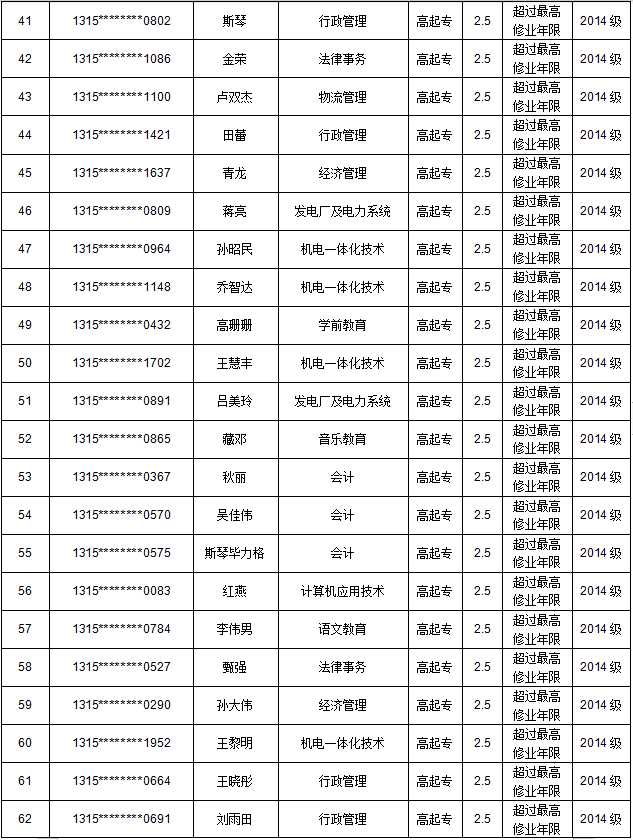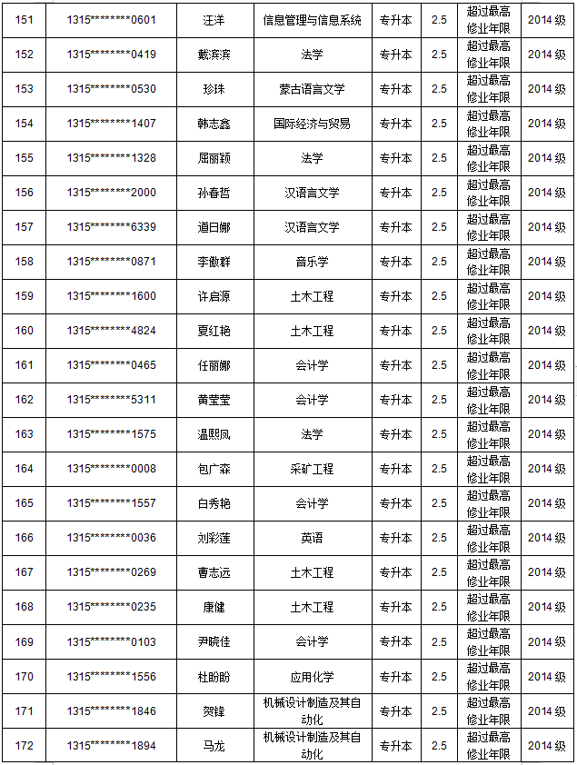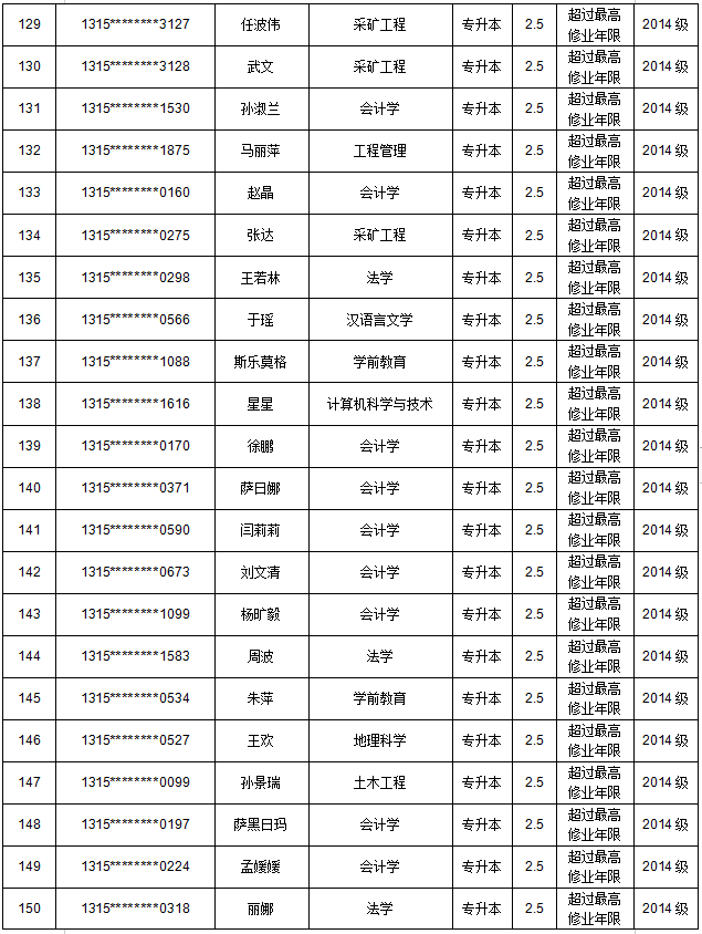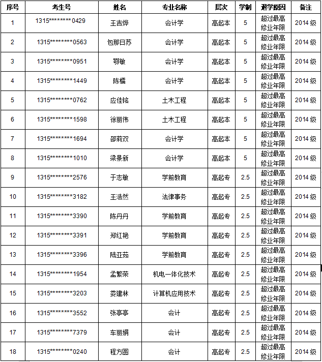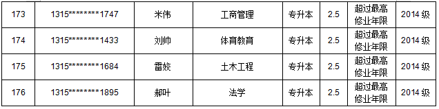 根据《普通高等公司员工管理规定》(中华人民共和国教育部令第41号)、《谈球吧学历继续教育学籍管理规定》第十条、第二十五条规定,经谈球吧董事长办公会研究决定,对王吉烨等176名超过最高修业年限尚未满足毕业条件的员工拟作退学处理,现将名单予以公示。