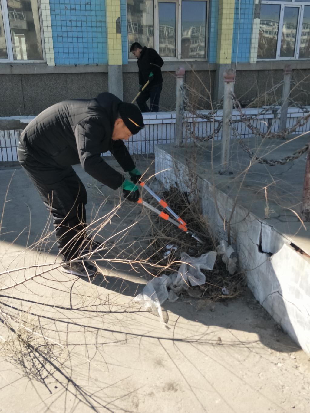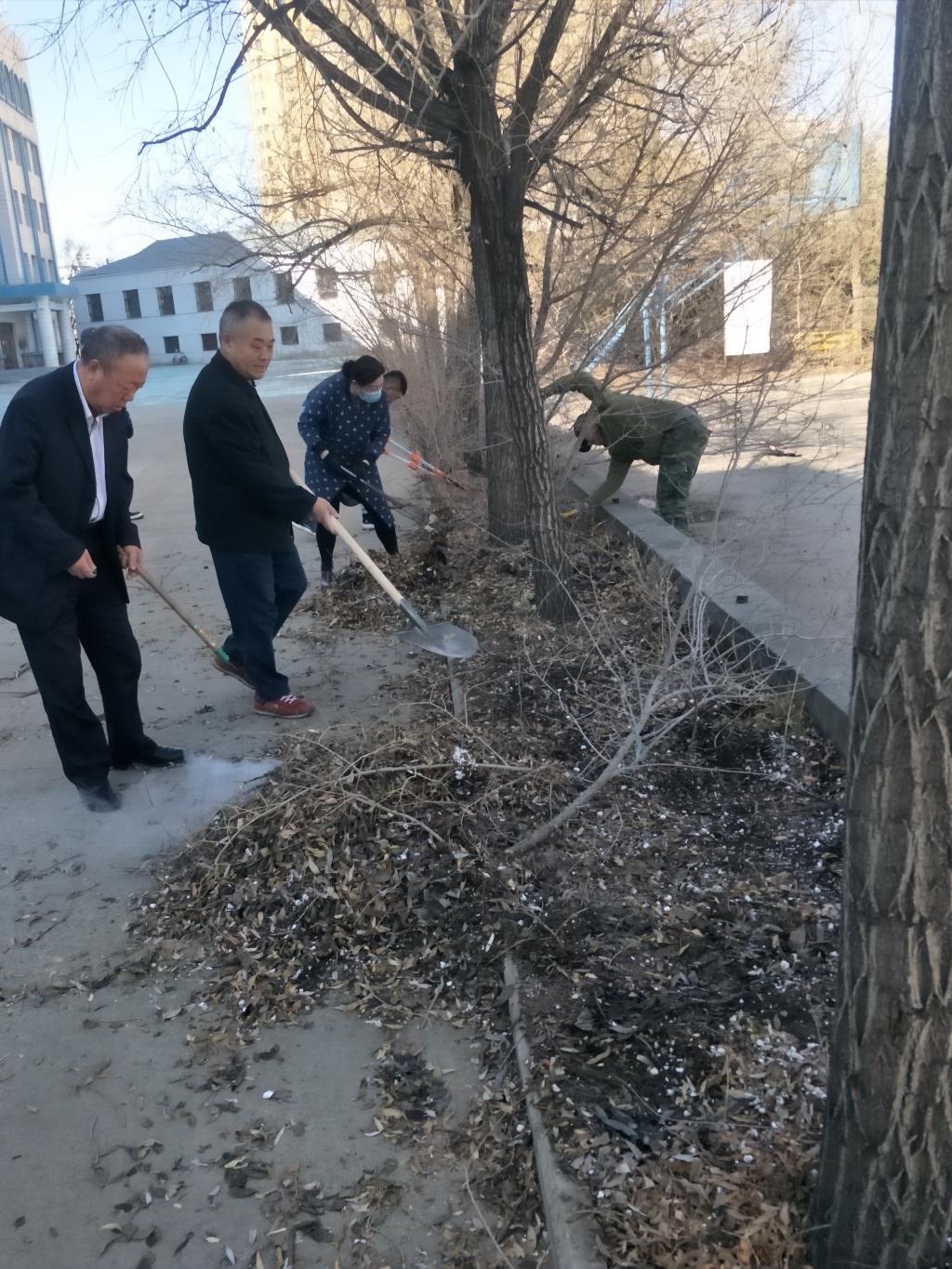谈球吧官方网站作为公司独立位于西校区服务社会的窗口单位,校园环境的好坏直接影响谈球吧对外的整体形象。在现有的条件下,为保持校区干净整洁,对校园内的枯死树木进行了清除,并修剪了树木的枝杈,清扫了院内死角多年存留的垃圾。劳动中大家不怕脏、不怕累。通过大家一番辛勤的劳动,让春日中的校园焕然一新,增添了不一样的生机。