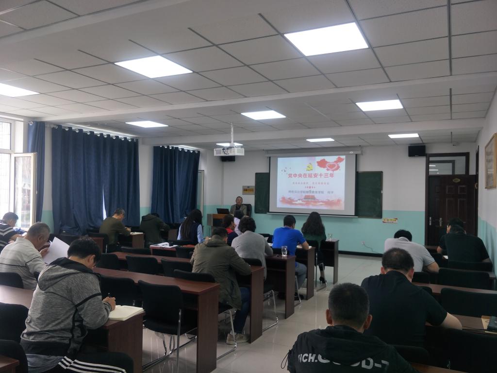 6月9日下午,谈球吧官方网站组织开展党支部书记讲主题党课活动,全体教职工参加,何平书记作了题目为《党中央在延安十三年---传承延安精神  坚定理想信念》讲座