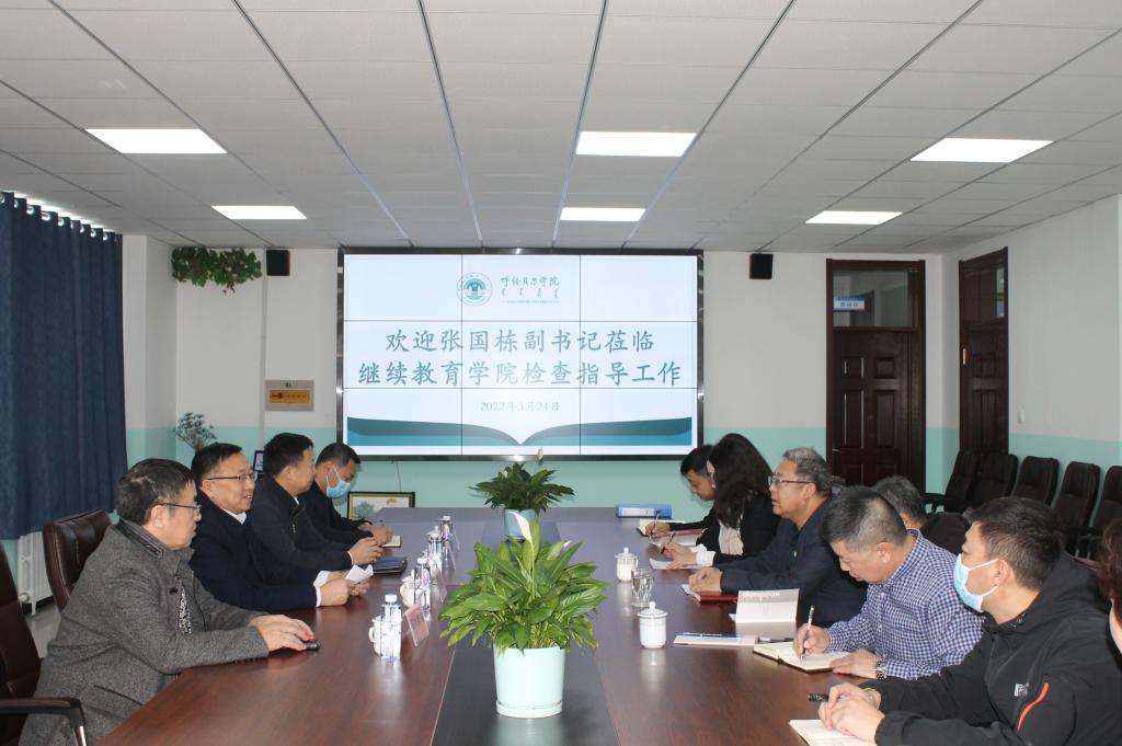 张国栋副书记听取汇报后对谈球吧官方网站的各项工作所取得的成绩给予了肯定。他说,谈球吧官方网站近年来变化很大,继续教育是公司办学的重要补充,是服务地方的重要平台和抓手,取得的成果也是大家共同努力的结果,对公司担忧的问题要逐项解决,做好培训项目和内容的拓展,开阔思路,积极争取,适当与牙克石校区联手,向林业、农业等方面辐射,助力乡村振兴。并强调了三点内容:一是铸牢中华民族共同体意识,做好国家通用语言中小学教师培训工作,这是政治任务,要有政治担当,利用好团队优势,主动出击;二是做好疫情防控,做好西校区辖区的管理,保证校园安全稳定,争取做到封闭管理,出入无漏点,规范管理。三是做好规范用字整改排查工作,加强意识形态管控,抓紧、抓实、抓细。