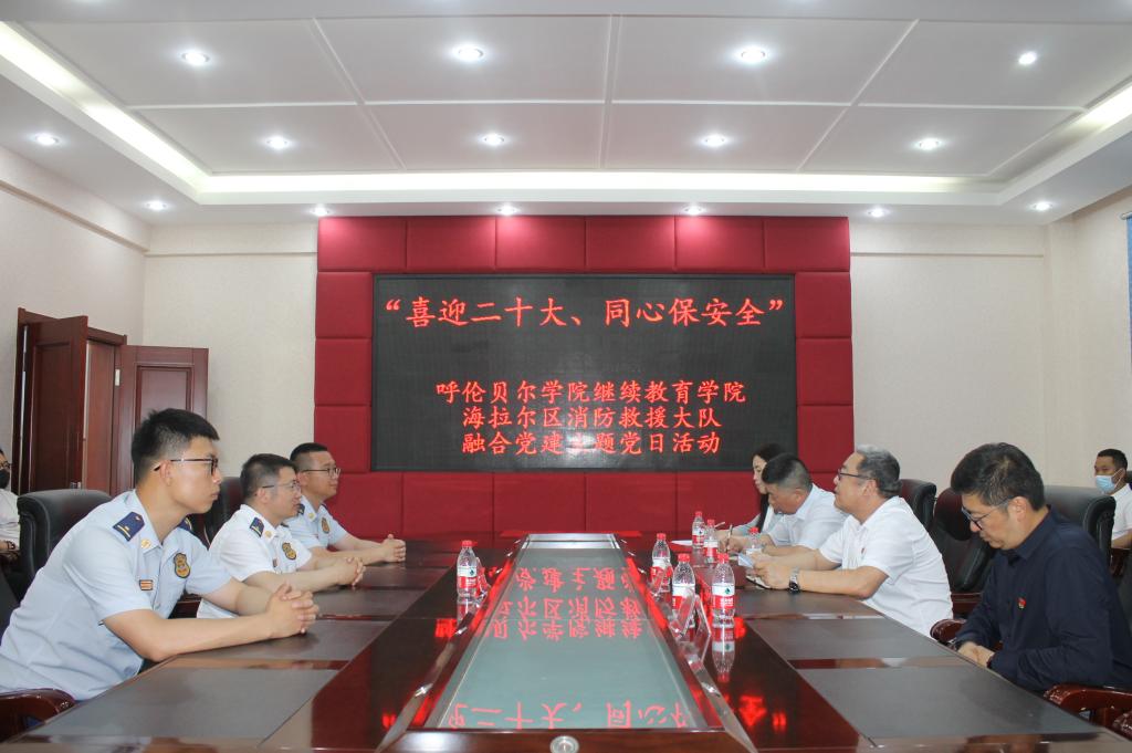 6月28日上午,“七一”建党节来临之际,为进一步增强消防安全意识,提高抵御紧急突发事件的能力,零距离接触消防、感受消防、体验消防,谈球吧官方网站直属党支部全体党员到河东海拉尔区消防救援大队参观学习并与海拉尔区消防救援大队全体党员指战员联合开展“喜迎二十大 同心保安全”融合党建主题党日活动。