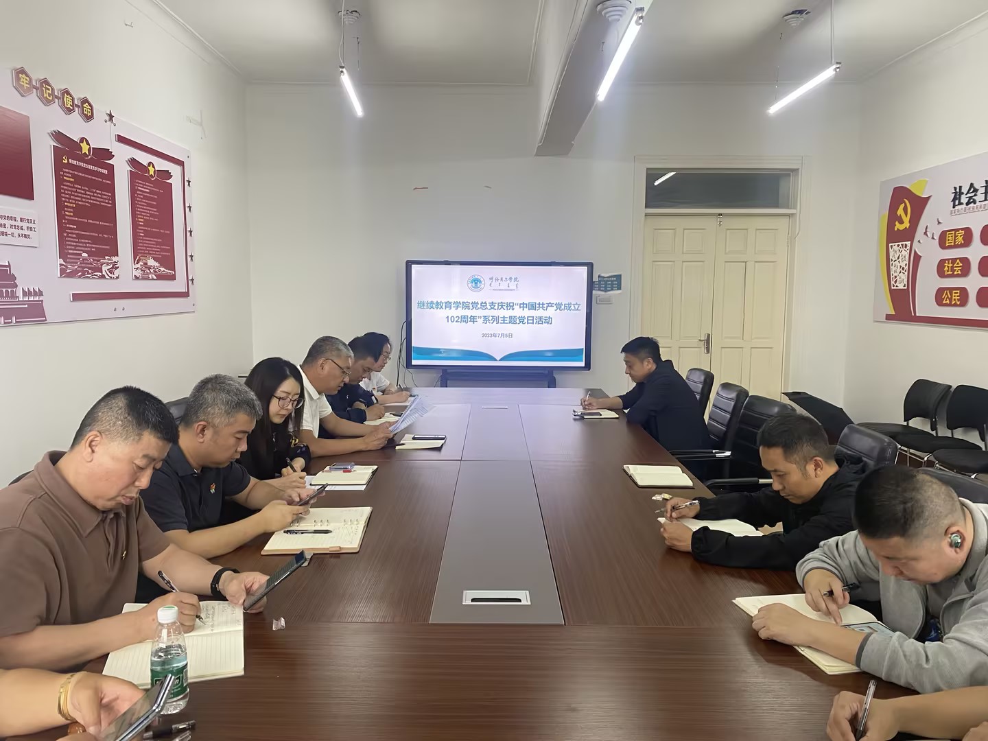 2023年7月5日下午,谈球吧官方网站党总支组织全体党员以“重温入党誓词,牢记初心使命,争做新时代合格党员”为主题,开展集中学习习近平总书记考察内蒙古重要讲话、主题党课及重温入党誓词等系列活动来纪念中国共产党成立102周年。
