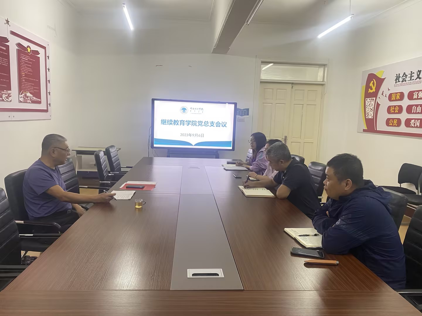 9月6日下午,继续教育学公司党总支在209会议室召开党总支会议。党总支书记李健主持会议。继续教育公司党总支纪检委员汪鑫、组织委员李海亮、统战委员包淑华、宣传委员姜晴川参加会议。