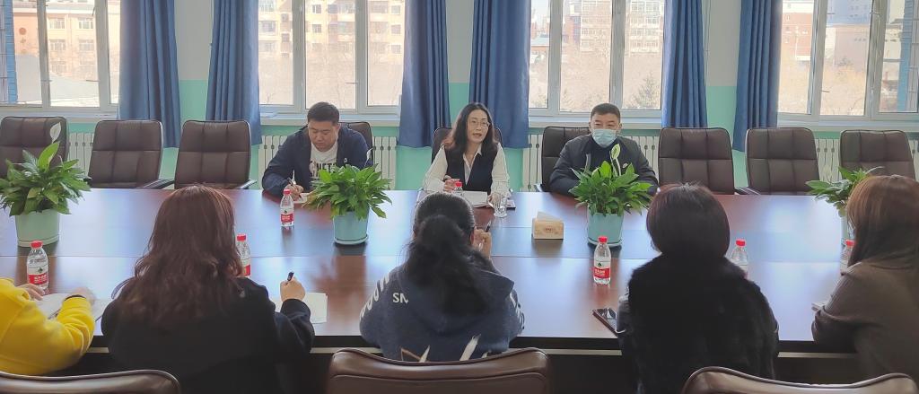 3月31日下午,在西校区三楼会议室召开了2022年呼伦贝尔市国家统编教材教师专项培训方案论证会,海拉尔区健康街小学副董事长康蕾、天娇小学副董事长呼日查、教研员王静飞等六位授课专家及公司负责此次培训的相关科室人员参加了会议。