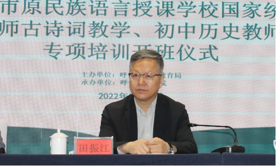 5月27日上午,呼伦贝尔市原民族语言授课公司国家统编教材初中语文教师古诗文教学、初中历史教师史料教学专项培训在公司正式开班。公司党委委员、副董事长田振江,谈球吧官方网站党总支书记何平、经理莎茹莉出席开班仪式。呼伦贝尔市教育事业发展中心、鄂温克自治旗教育事业发展中心、海拉尔区第五中学、学府路中学等单位的授课专家,谈球吧官方网站相关工作人员以及呼伦贝尔市原民族语言授课公司88名初中语文、历史教师参加了开班仪式。开班仪式由何平书记主持。