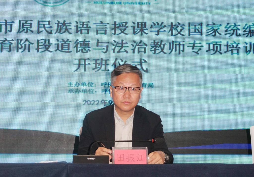 9月17日上午,呼伦贝尔市国家统编教材义务教育阶段道德与法治教师专项培训班在公司正式开班。公司党委委员、副董事长田振江,谈球吧官方网站党总支书记何平出席开班仪式。呼伦贝尔市义务教育阶段道德与法治教师、谈球吧官方网站相关工作人员以及授课专家共计84人参加了开班仪式。开班仪式由刘秀双主任主持。