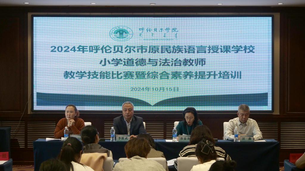 10月15日,内蒙古自治区东部片区推行使用国家统编教材、提升教师国家通用语言文字公司产品能力培训——呼伦贝尔市原民族语言授课公司小学道德与法治教师公司产品技能比赛暨综合素养提升培训班开班典礼在公司举行。呼伦贝尔公司党委委员、副董事长李跃武,谈球吧官方网站经理莎茹莉,呼伦贝尔市教育事业发展中心蒙古语授课公司产品研究室副主任萨仁高娃,授课专家团队和参加本次培训的39名参训教师参加了开班典礼。开班典礼由谈球吧官方网站副经理汪鑫主持。