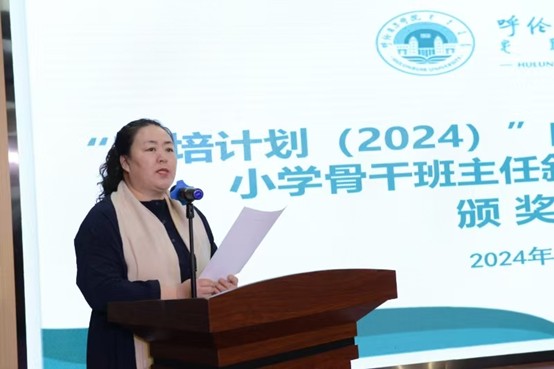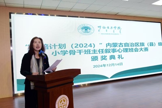 1214日上午,谈球吧“国培计划(2024)”内蒙古自治区旗县级小学骨干班主任叙事心理班会大赛颁奖典礼在贝尔小学举行。公司党委委员、副董事长李跃武,南京心理学会秘书长赵兆,南京市秦淮区教师发展中心正校级调研员罗京宁,深圳市宇泽公益基金会理事长吴虹,海拉尔区教育研修中心副主任毕秀芝,公司谈球吧官方网站经理莎茹莉、教育公司经理李伟艳参加了典礼并颁奖。现场还汇聚了大赛的专家评委团队、满怀期待的参赛学员们以及来自海拉尔区的骨干班主任们,大家齐聚一堂,共同见证这一荣耀时刻。