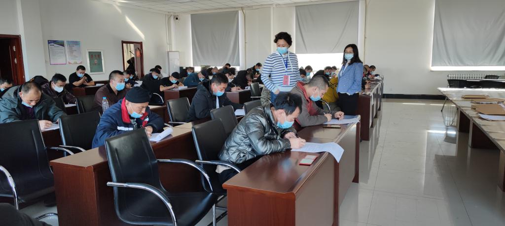 签约仪式结束后,莎茹莉经理对正在伊敏露天矿、敏东一矿进行的从业人员培训理论考试考场进行了巡视。